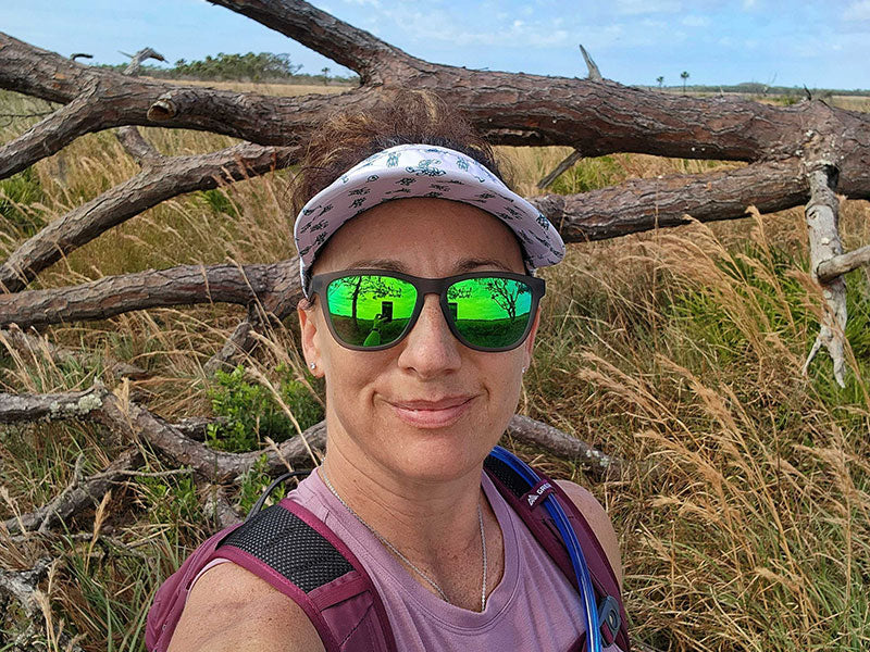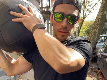 Dato curioso: Los gorilas de espalda plateada pueden agacharse hasta 1.000 libras. ¿No nos crees? Pregúntale a Harambe... no importa. No te preocupes, ponerse en cuclillas con estas gafas grises con lentes moradas/azules te ayudará a ocultar las lágrimas de la angustia que aún te persigue. RIP HARAMBE, RIP.